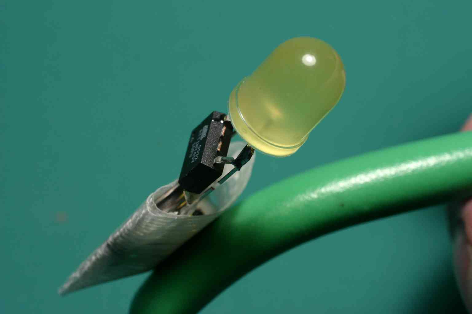 | This javascript animation aproximates the look of a Throwie that has been hacked to blink out messages under control of a Cybord computer. A Throwie is a battery operated LED light with a strong magnet that allows it to stick where thrown. Here it stuck to the very pliers that applied the hack. We've writen step by step instructions showing how we made this mashup of two Maker Faire projects. See another version hosted at Instructables. |