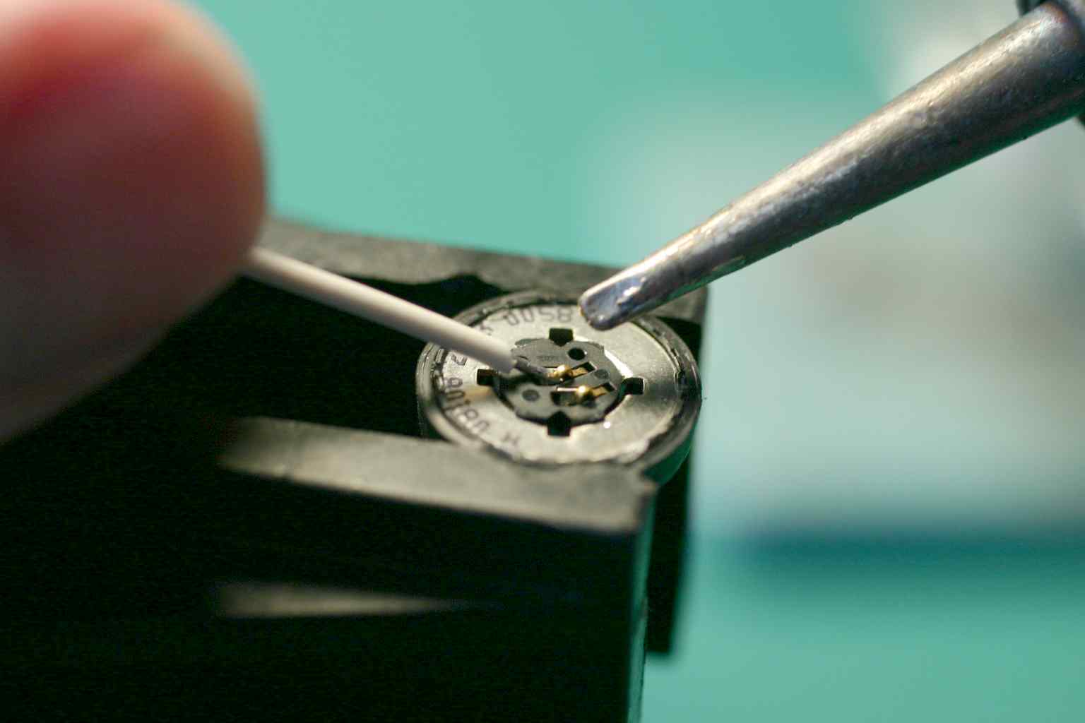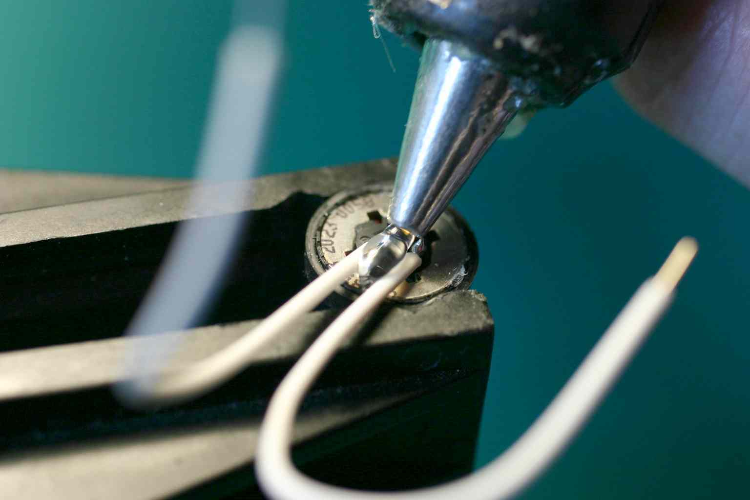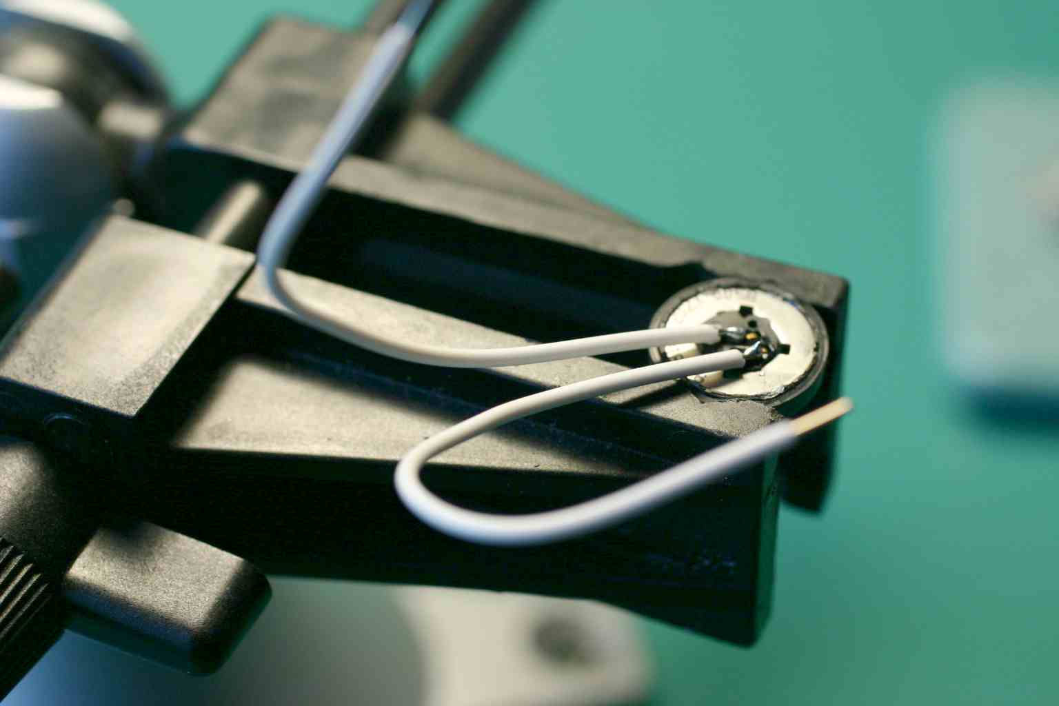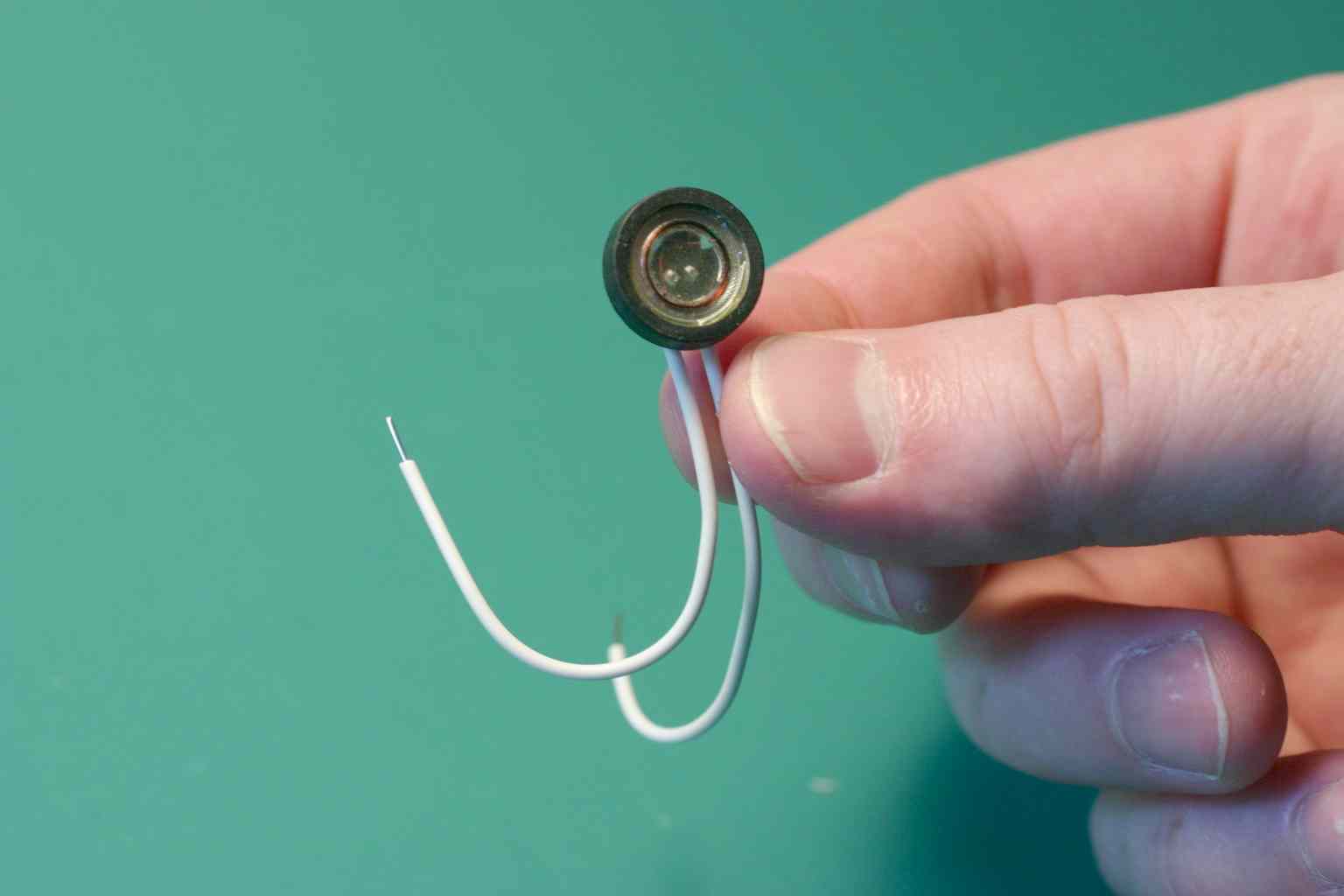 The speaker has a plastic diaphram on one side and spring connectors on the other. Use a vice to hold the speaker. Tin the spring connecters, two solid wire leads, and solder quickly so as not to meld anything inside the speaker. Use hot melt glue to hold the wires to the speaker frame so that wiggles don't transmit throught to the connectors.